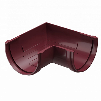 Угловой элемент желоба универсальный ДЕКЕ STANDARD d120мм 90 градусов цвет RAL 3005 Красный в Сочи. Угловые элементы устанавливаются как на внешних, так и на внутренних углах кровли и предназначены для соединения желобов.