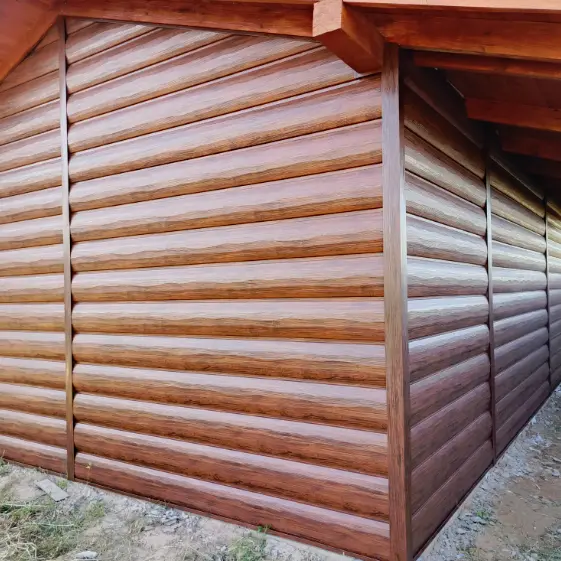 Металлический сайдинг Бревно Рубленое 4Д подчеркивает солидность и надежность постройки, придавая ей вид деревянного сруба, но при этом обладает всеми преимуществами металла: прочностью, долговечностью и устойчивостью к внешним воздействиям. Такое решение гармонично сочетает выразительный дизайн и практичность, создавая эффектный и долговечный фасад.